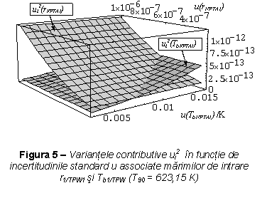 În Figura 18.2 se poate vedea o reprezentare a incertitudinilor standard compuse propagate de la incertitudinile de etalonare la punctele fixe, așa cum au fost determinate cu MAI, și care se bazează pe datele de intrare din Tabelul 18.2. Sunt prezentate două cazuri: cazul în care sunt luate în considerare toate corelațiile specificate anterior (curba MAI corelat) și cazul în care nu este luată în considerare nici o corelație (curba MAI necorelat). Contribuția termenilor de corelație (în special cea dintre I1 și I2) se dovedește a fi semnificativă (aproximativ 27% din uc(W) determinată cu MAI corelat la TZn și TSn). Pe același grafic sunt reprezentate două curbe calculate cu modelul [7]: cazul în care s-au folosit datele de intrare din [7] (curba ML) și cazul în care s-au folosit datele de intrare din Tabelul 18.2 (curba ML cu valorile INM); în acest ultim caz, diferențele maxime față de curba MAI corelat sunt, la 350 °C, de 11 % din uc(W) cu MAI corelat.